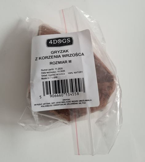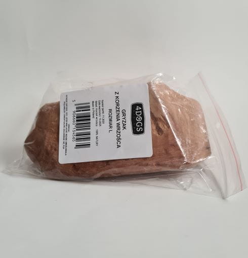 Gryzak z korzenia drzewa wrzosowego firmy 4Dogs, to ekologiczna, naturalna zabawka dla psa. Bardzo wytrzymałe kawałki korzenia wrzośca - rośliny z terenów śródziemnomorskich. Jest to krzew dorastający do 4 - 6 metrów, pomiędzy pniaczkiem a systemem korzeniowym wytwarza zwarte, twarde bulwy. Z nich od dawna robiono trwałe drobne domowe akcesoria - deski do krojenia, krzyżyki oraz okładziny rękojeści noży.
