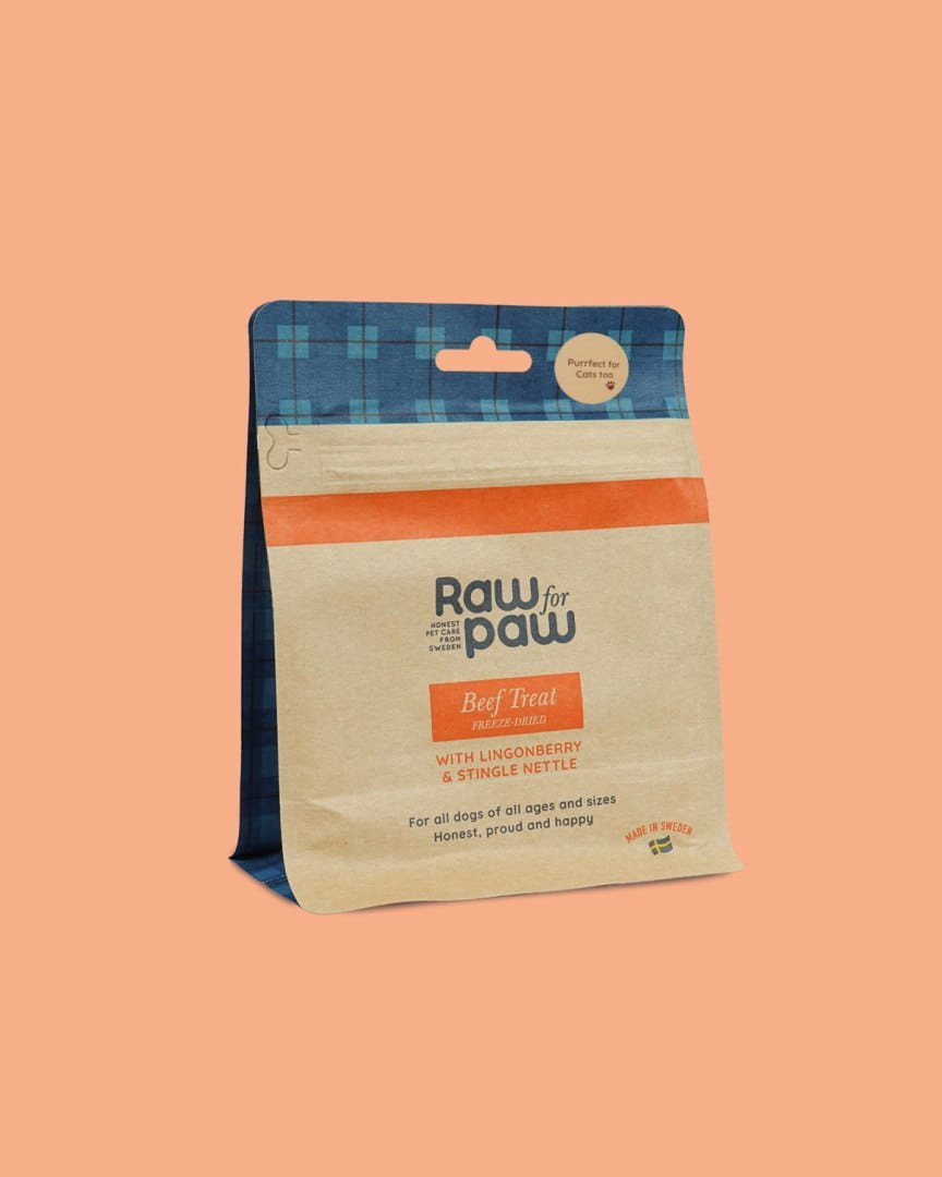 Mięso użyte do produkcji przysmaków RAW for PAW pochodzi od zwierząt ze starannie wybranych gospodarstw. Poddane procesowi liofilizacji, który pozwala zachować wartości odżywcze nie ingerując w skład. Dzięki liofilizacji przysmaki mogą być przechowywane – bez stosowania żadnych dodatków, pasteryzacji czy środków konserwujących. Produkowane są we własnej fabryce w Småland w Szwecji.